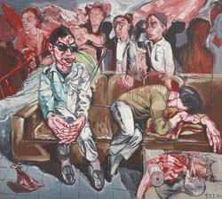 Since the beginning of her career, he has presented a succession of powerfully introspective subjects, from the haunting Hospital paintings to the visceral Meat paintings that juxtapose human subjects with butchered flesh; from the enigmatic Mask paintings to candid and startling close-up portraits; from intimate, existential still-lifes to depictions of pivotal Western cultural figures such as Francis Bacon, whose psychic portraits altered the status of the human figure in twentieth century art. Charged with an underlying psychological tension, Zeng's oeuvre reveals the place of the unconscious and the aberrant in the construction of human experience.